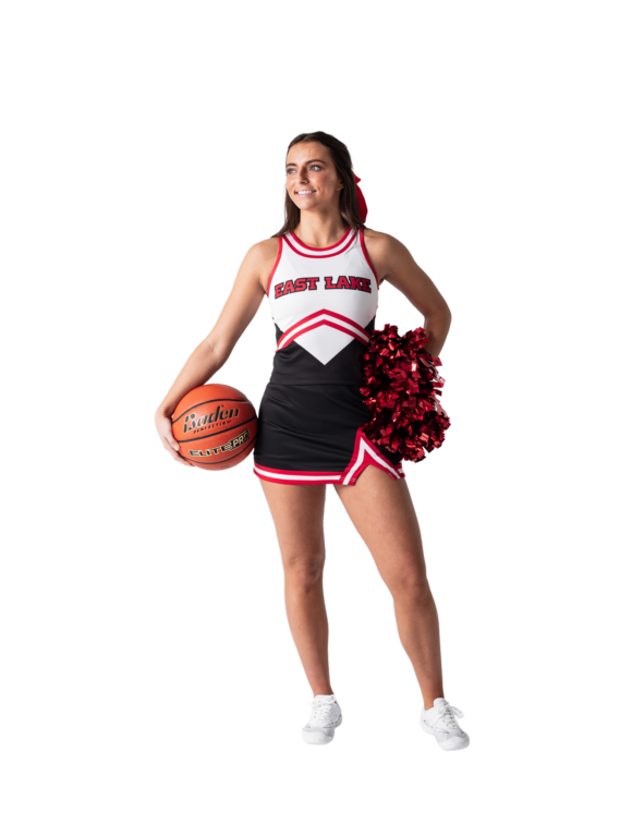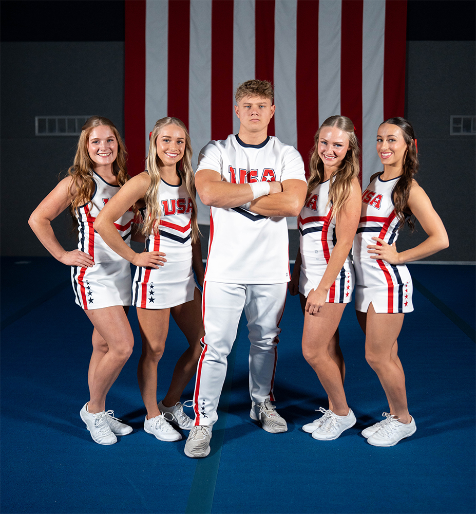 This cheer line was thoughtfully designed with both performance and practicality in mind. From stand out sublimated graphics, to sewn on hybrid twill, and shimmering rhinestone accents, each uniform is crafted to support movement while showcasing your team pride. Whether on the sidelines or the mat, our uniforms deliver comfort, flexibility, and a look that helps every team feel confident, unified, and ready to cheer.